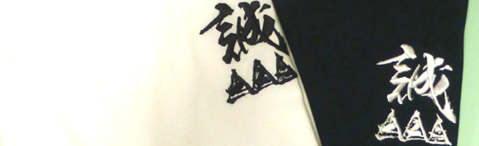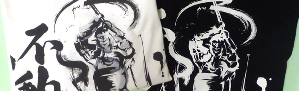 影の関係でシャツへの印刷方法が違っており(白はインクジェット印刷、黒はシルク印刷。後ろの剣道の文字は、どちらもシルク印刷になります)どちらもそれぞれの味わいがあるこだわりのTシャツです。